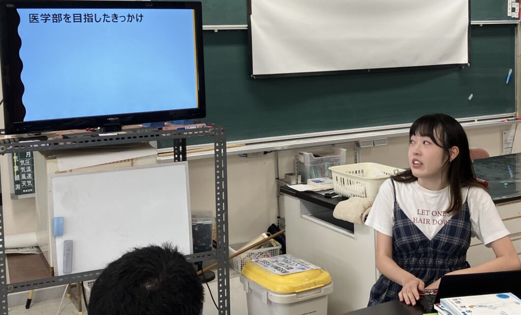 高校生に学習サポートしている医学部生によるボランティア活動の紹介もさせていただきました